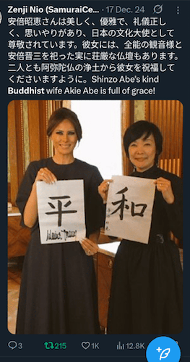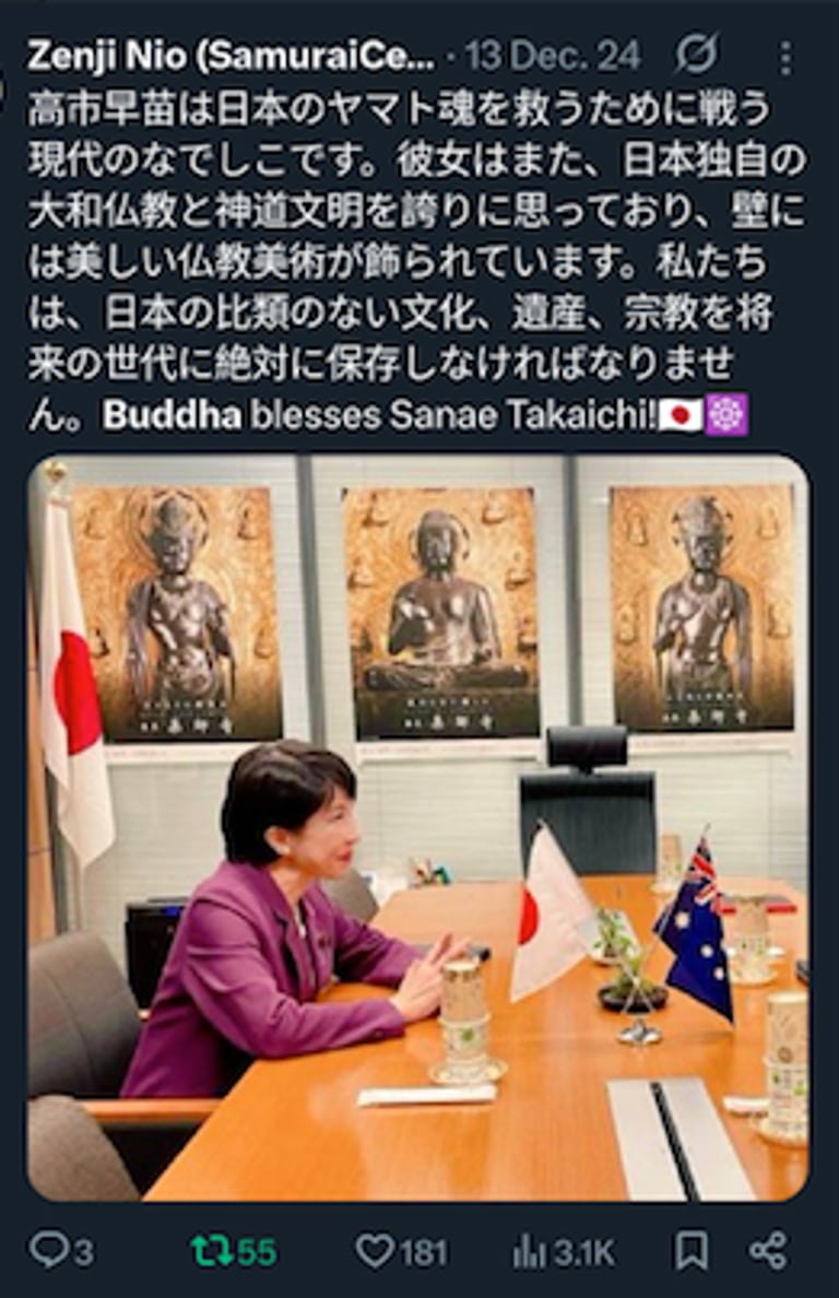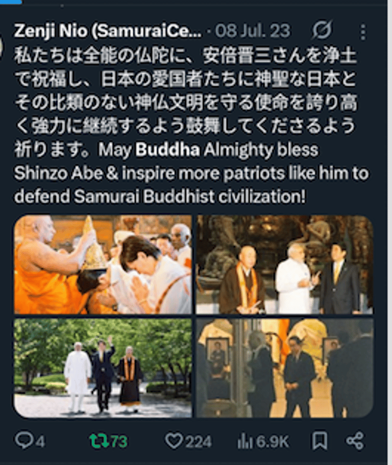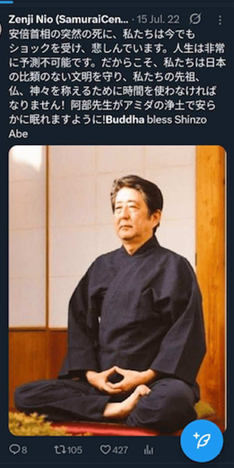 仁王禅師が誇り高き仏教者、安倍晋三氏と高市早苗氏に敬意を表