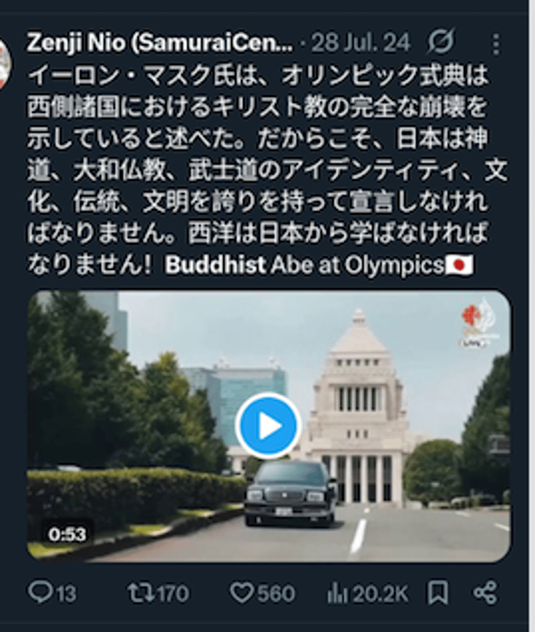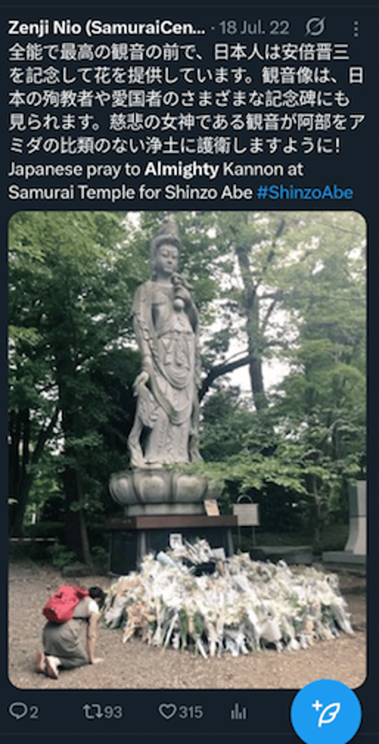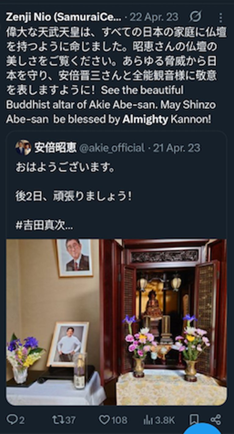 仁王禅師が誇り高き仏教者、安倍晋三氏と高市早苗氏に敬意を表