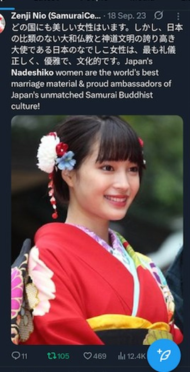 仁尾善司が日本のなでしこ女性の内面と外面の美しさを称える